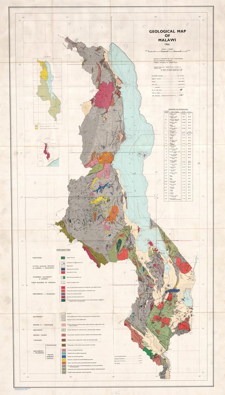 Title: Geological map of Malawi - Scale: 1000000 - Annotations