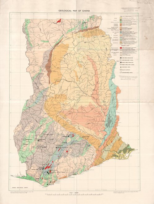 Title: Geological map of Ghana - Scale: 1000000 - Annotations