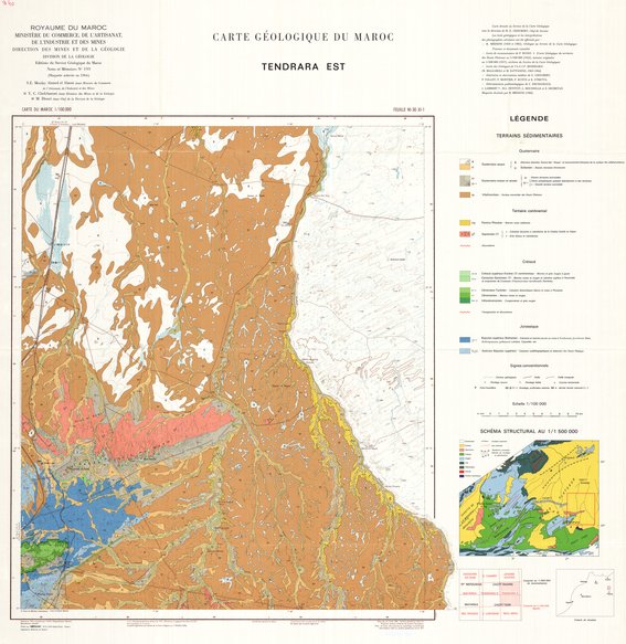 Title: Notes et Mémoires N°193, Tendrara Est Carte géologique du Maroc - Scale: 100000 - Sheet number/Numéro de feuille/Bladnummer: NI-30-XI-1