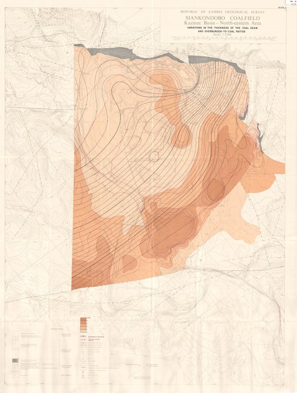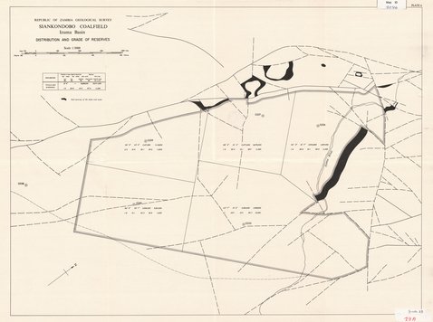 Title: Republic of Zambia, Siankondobo coalfield - Izuma Basin - Distribution and grade of reserves - Scale: 5000 - Map to accompany Economic Report N°16 Plate 6 - Sheet number/Numéro de feuille/Bladnummer: 6