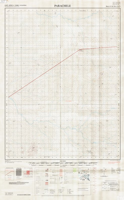 Title: East Africa 1:50.000 (Uganda) with part of Republic of thr Sudan, Parachele - Scale: 50000 - Series Y732 - Sheet number/Numéro de feuille/Bladnummer: 6/4 and part of 6/2