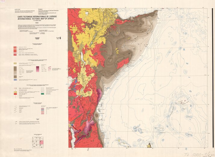 Title: Carte tectonique internationale de l'Afrique, International tectonic map of Africa - Scale: 5000000 - Assemblage en 9 feuilles - Sheet number/Numéro de feuille/Bladnummer: 6