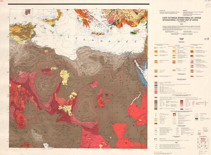 Title: Carte tectonique internationale de l'Afrique, International tectonic map of Africa - Scale: 5000000 - Assemblage en 9 feuilles - Sheet number/Numéro de feuille/Bladnummer: 2