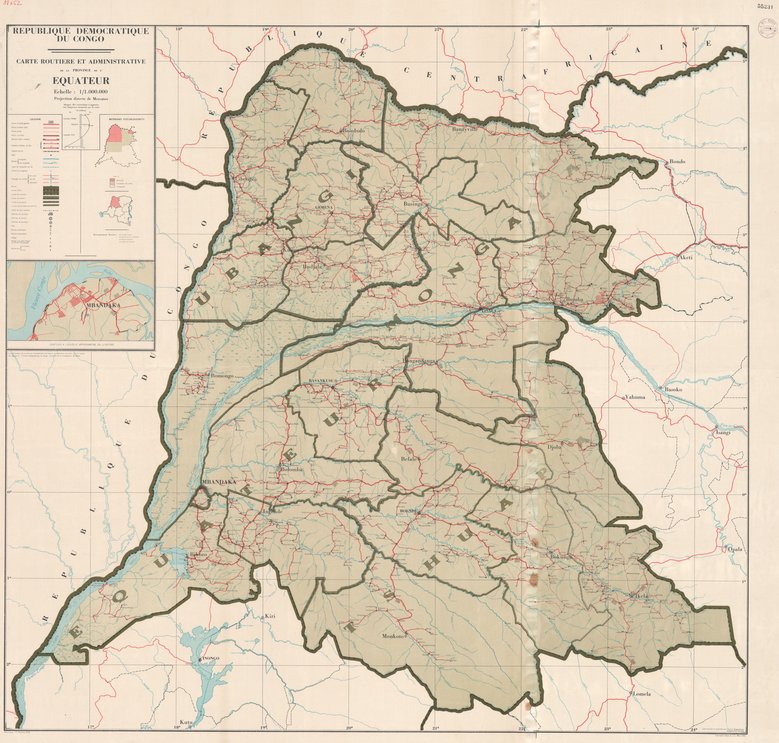 Title: Carte routière et administrative de la Province de l'Equateur - Scale: 1000000