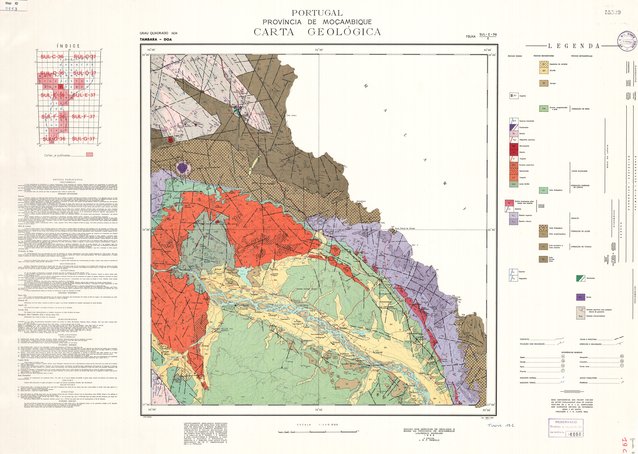 Title: Carta geologica da provincia de Moçambique Grau Quadrado 1634, Tambara - Doa - Scale: 250000 - Sheet number/Numéro de feuille/Bladnummer: SUL-E-36-E