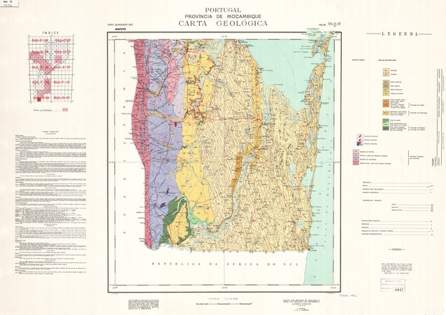 Title: Carta geologica da provincia de Moçambique Grau quadrado 2632, Maputo - Scale: 250000 - Sheet number/Numéro de feuille/Bladnummer: SUL-G-36-O