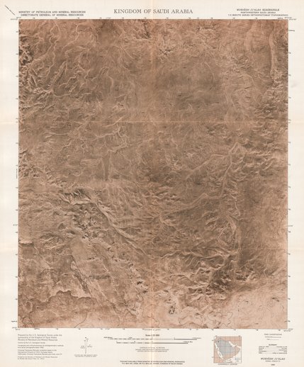 Title: 7.5-Minute Series Orthophotomap (Topographic), Kingdom of Saudi Arabia Mushash Ju'Alah quadrangle (Northwestern Saudi Arabia) - Scale: 25000 - Prepared by the U.S. Geological Survey under the sponsorship of the Kingdom of Saudi Arabia, Ministry of Petroleum and Mineral Resources - Sheet number/Numéro de feuille/Bladnummer: N2930-E3815/7.5