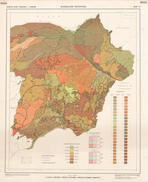 Title: North East Nigeria Rangeland potential - Scale: 1000000 - This map accompanies a Land Resource Study, The Land Resources of North East Nigeria - Sheet number/Numéro de feuille/Bladnummer: 10