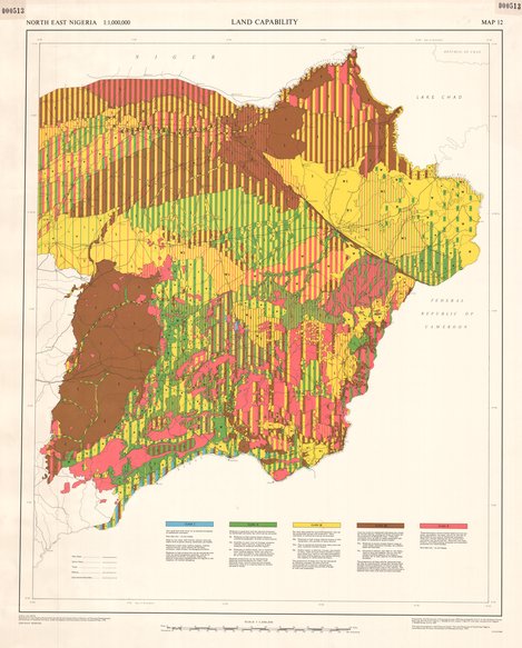 Title: North East Nigeria Land Capability - Scale: 1000000 - This map accompanies a Land Resource Study, The Land Resources of North East Nigeria - Sheet number/Numéro de feuille/Bladnummer: 12