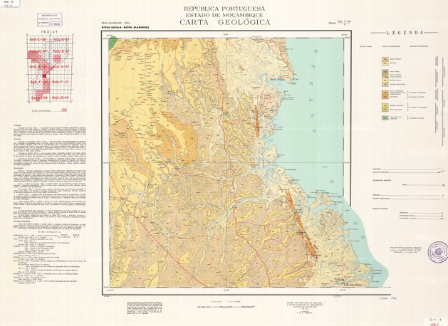 Title: Carta geologica da provincia de Moçambique Grau Quadrado 2034, Nova Sofala - Nova Mambone - Scale: 250000 - Sheet number/Numéro de feuille/Bladnummer: SUL-F-36-E