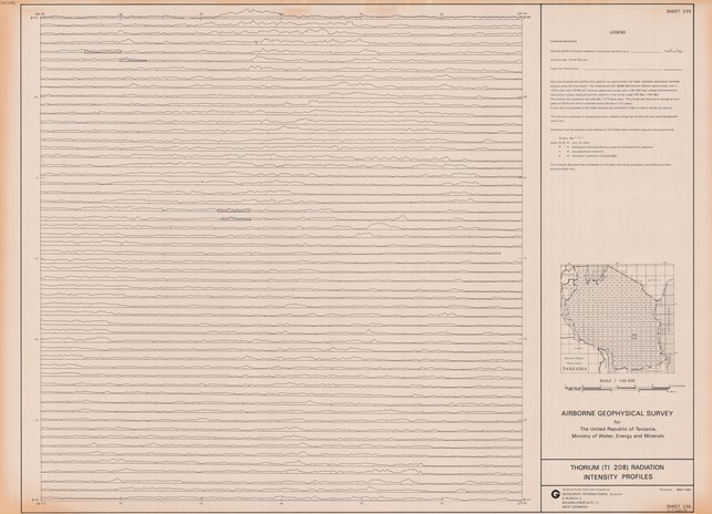 Title: Airborne Geophysical Survey for The United Republic of Tanzania, Ministry of Water, Energy and Minerals, Thorium (TI 208) radiation Intensity profiles - Scale: 100000 - Sheet number/Numéro de feuille/Bladnummer: 235
