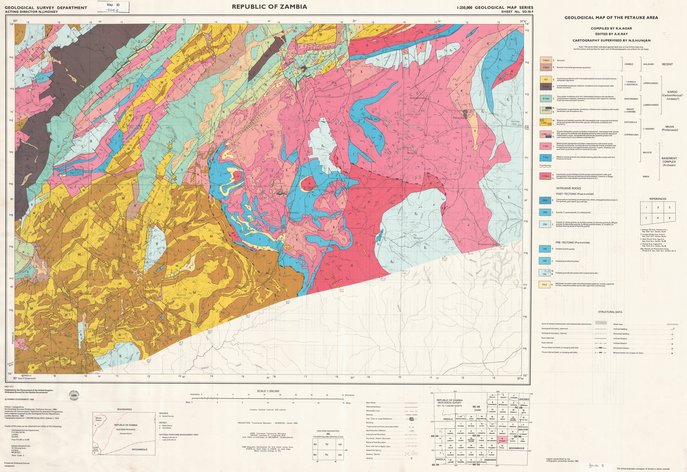 Title: Geological map of the Petauke area, Republic of Zambia - Scale: 250000 - Sheet number/Numéro de feuille/Bladnummer: SD-36-9