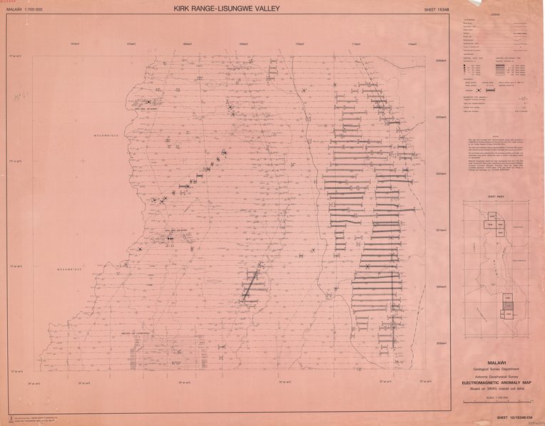 Title: Electromagnetic anomaly map, Kirk Range - Lisungwe Valley - Scale: 100000 - Sheet number/Numéro de feuille/Bladnummer: 1534B