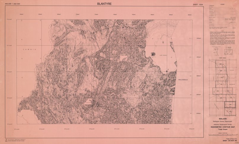 Title: Blantyre, Radiometric contour map Total count - Scale: 250000 - Sheet number/Numéro de feuille/Bladnummer: 1534