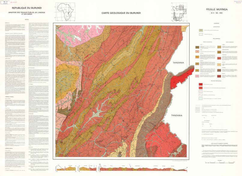 Title: Carte géologique du Burundi, Muyinga - Scale: 100000 - Sheet number/Numéro de feuille/Bladnummer: S3/30 - SW