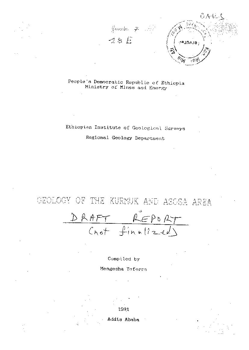 Title: Geology of the Kurmuk and Asosa Area - Scale: 250000 - Minute : Draft Report (not finalized)
