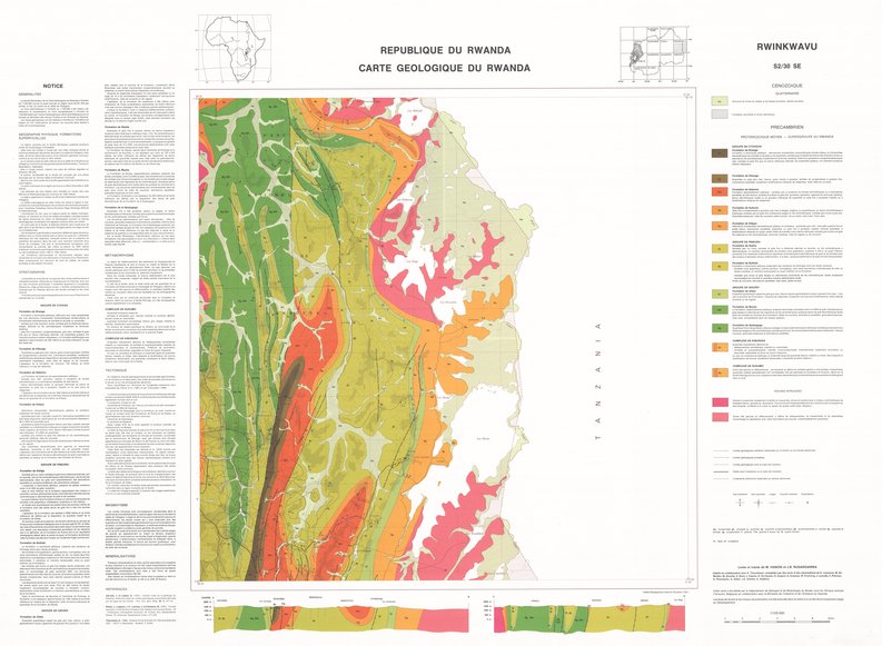 Title: Carte géologique du Rwanda, Rwinkwavu - Scale: 100000 - Carte d'assemblage - Sheet number/Numéro de feuille/Bladnummer: S2/30 SE
