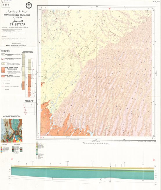 Title: Carte géologique de l'Algérie, Es Settar - Scale: 200000 - Sheet number/Numéro de feuille/Bladnummer: NH-31-XI