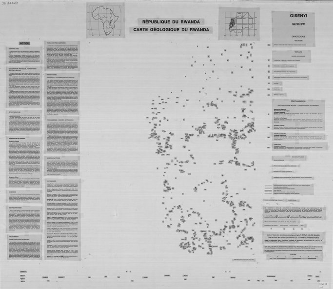 Title: Carte géologique du Rwanda, Gisenyi - Scale: 100000 - Carte d'assemblage Minute sans tracé - Sheet number/Numéro de feuille/Bladnummer: S2/29 SW