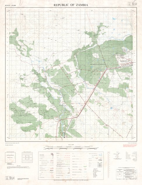 Title: The Republic of Zambia - Scale: 50000 - Serie ZS51 - Sheet number/Numéro de feuille/Bladnummer: 1527 D3