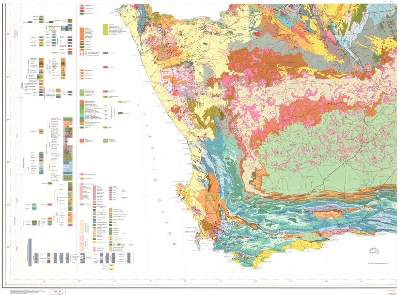 Title: Geological map of the Republic of South Africa and the Kingdoms of Lesotho and Swaziland - Scale: 1000000 - Assemblage de 4 feuilles - Sheet number/Numéro de feuille/Bladnummer: SW