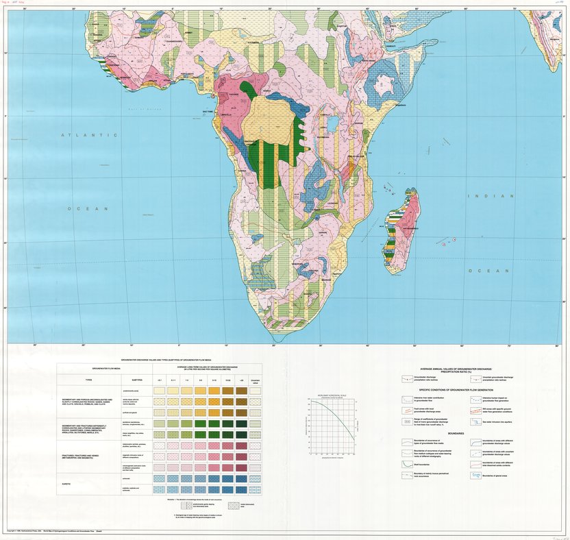 Title: World map of hydrogeological conditions and groundwater flow - Scale: 10000000 - Carte en 6 feuilles et une notice - Sheet number/Numéro de feuille/Bladnummer: 4