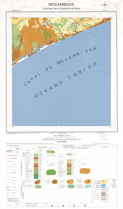 Title: Moçambique Carta de Uso e Cobertura da Terra Xai-Xai - Scale: 250000 - Sheet number/Numéro de feuille/Bladnummer: 100