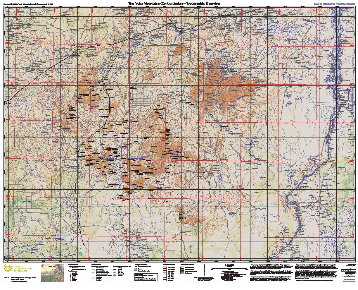Title: The Nuba Mountains (Central Sudan), Topographic Overview - Scale: 500000