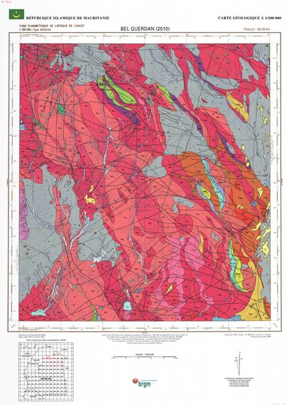 Title: Bel Guerdan (2510), Carte géologique de la République Islamique de Mauritanie - Scale: 200000 - Type Saharien - Sheet number/Numéro de feuille/Bladnummer: NG-29-VIII