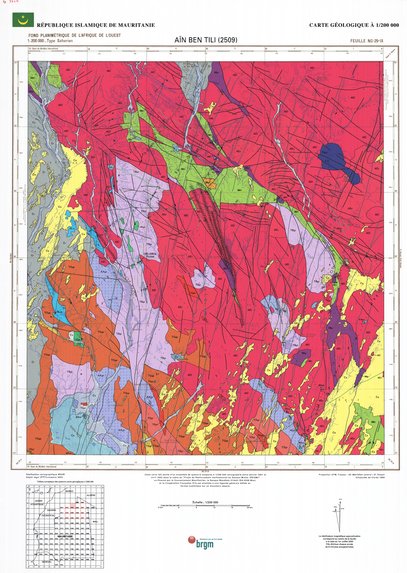 Title: Aïn Ben Tili (2509), Carte géologique de la République Islamique de Mauritanie - Scale: 200000 - Type Saharien - Sheet number/Numéro de feuille/Bladnummer: NG-29-IX