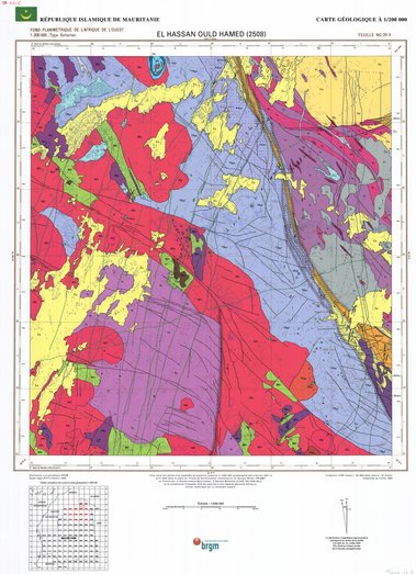 Title: Carte géologique de la République Islamique de Mauritanie, El Hassan Ould Hamed (2508) - Scale: 200000 - Type Saharien - Sheet number/Numéro de feuille/Bladnummer: NG-29-X