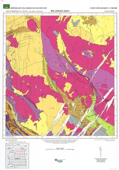 Title: Bir Lemjed (2507), Carte géologique de la République Islamique de Mauritanie - Scale: 200000 - Type régions désertiques - Sheet number/Numéro de feuille/Bladnummer: NG-29-XI