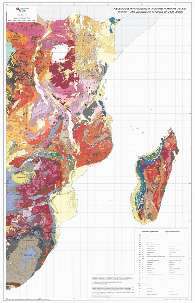 Title: Géologie et minéralisations à gemmes d'Afrique de l'Est, Geology and Gemstones deposits of East Africa - Scale: 4000000 - ISBN : 2-7159-0944-6