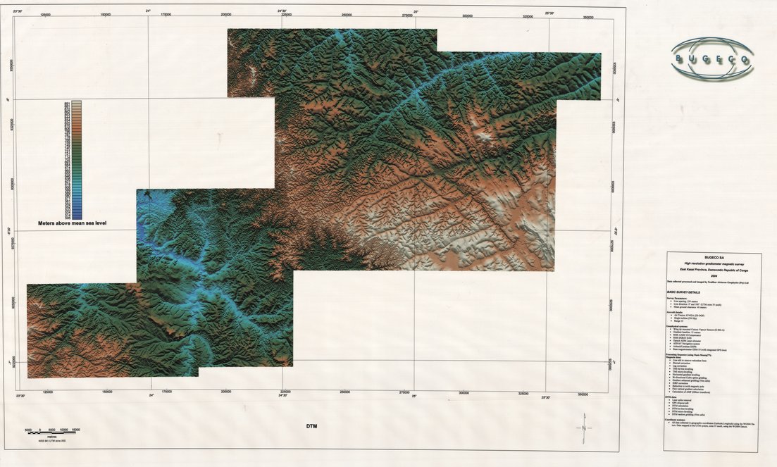 Title: DTM, Hight resolution gradiometer magnetic survey East Kasai Province, Democratic Republic of Congo - Scale: 230000 - ZAI068