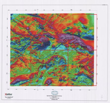 Title: East Kasai Magnetic Gradiometer Survey, Total Magnetic Field Image Preliminary data - Scale: 105000 - ZAI069 De Beers permits