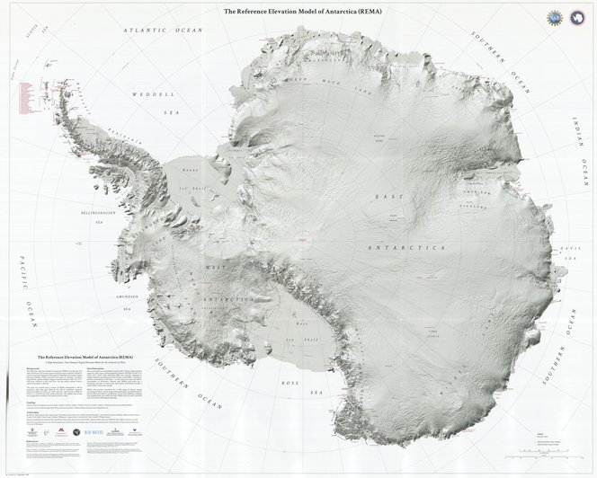 Title: The reference elevation model of Antarctica (REMA) - Scale: 10000000 - Version 1,2