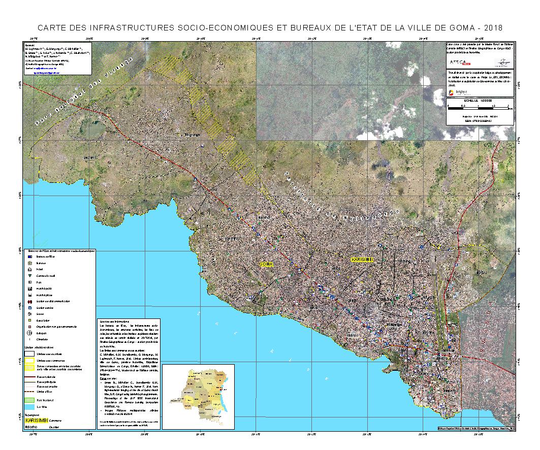 Title: Carte des infrastructures socio-économiques et bureaux de l'Etat de la ville de Goma, Province du Nord-Kivu - Scale: 20000 - ISBN : 9789492669483