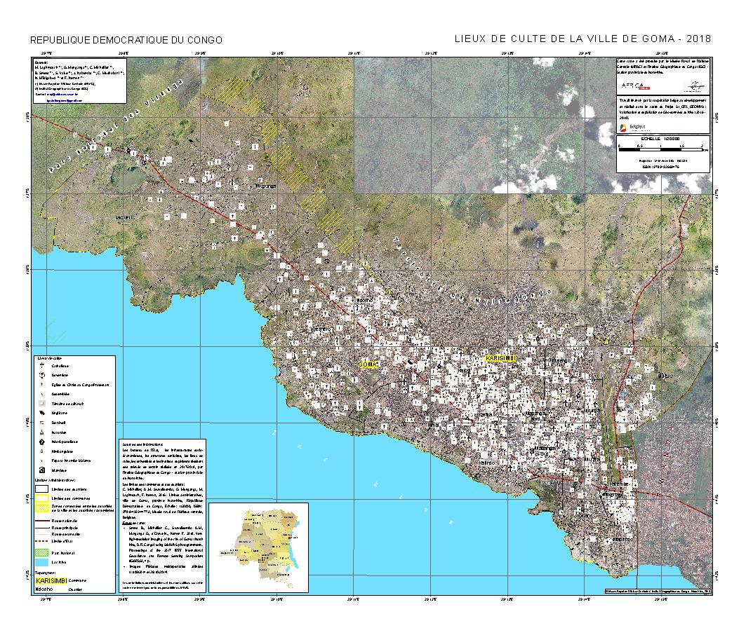 Title: Lieux de culte de la ville de Goma, Province du Nord-Kivu - Scale: 20000 - ISBN : 9789492669476