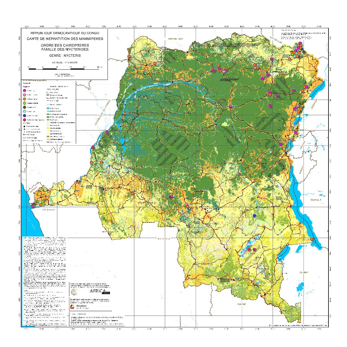 Title: Carte de répartition des mammifères Ordre des Chiroptères Famille des Nycterides Genre : Nycteris - Scale: 2500000 - ISBN : 9789492669254