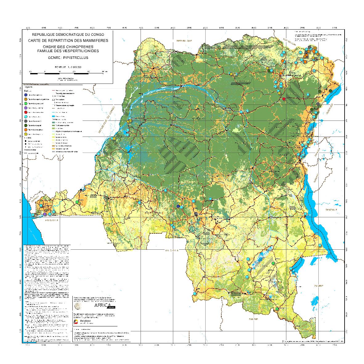Title: Carte de répartition des mammifères Ordre des Chiroptères Famille des Vespertilionides Genre : Pipistrellus - Scale: 2500000 - ISBN : 9789492669308