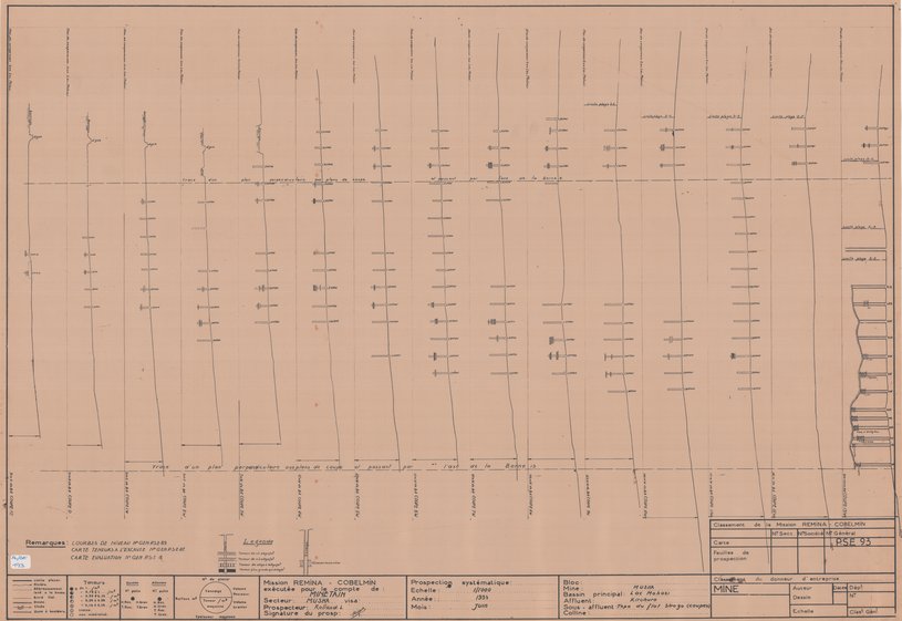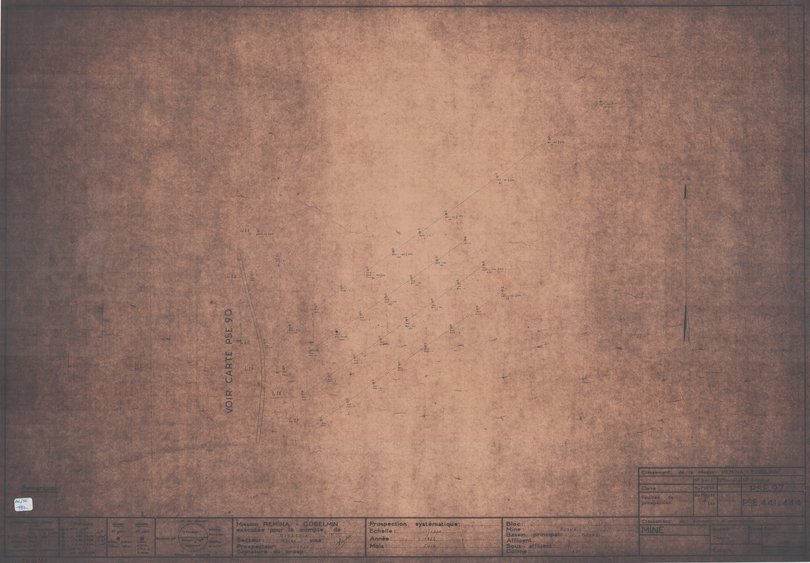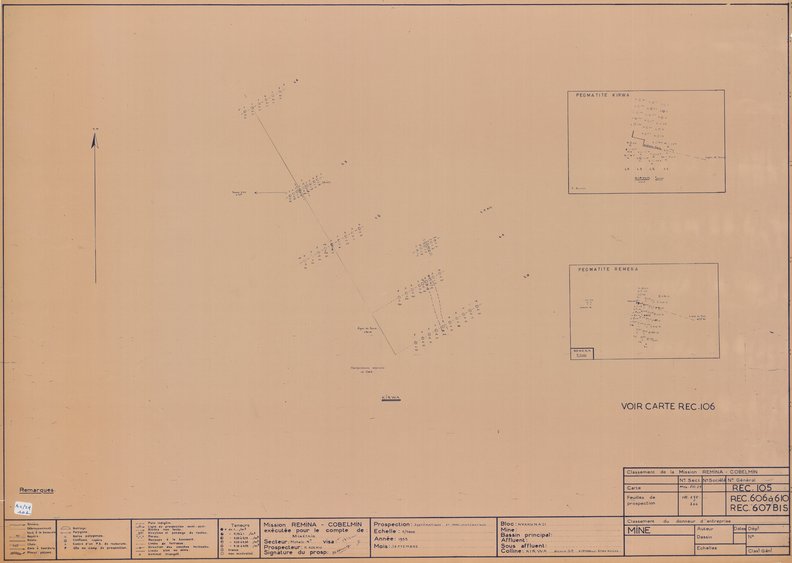 Title: Mine: Colline: Kirwa, Minétain - Secteur : Mohazi Nord Carte d'assemblage de la prospection: Bloc Nyarunazi - Scale: 1000 - n°gen° Rec 105