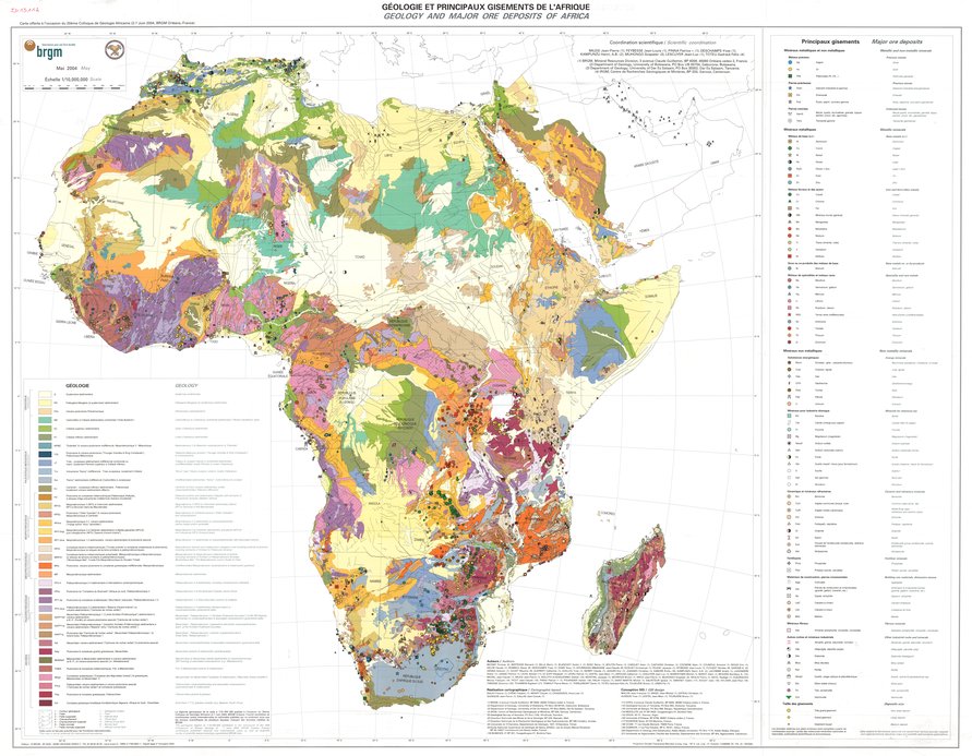 Title: Géologie et principaux gisements d'Afrique, Geology and major ore deposits of Africa - Scale: 10000000 - ISBN : 2-7159-0941-1