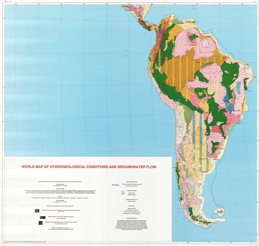 Title: World map of hydrogeological conditions and groundwater flow - Scale: 10000000 - Carte en 6 feuilles et une notice - Sheet number/Numéro de feuille/Bladnummer: 6