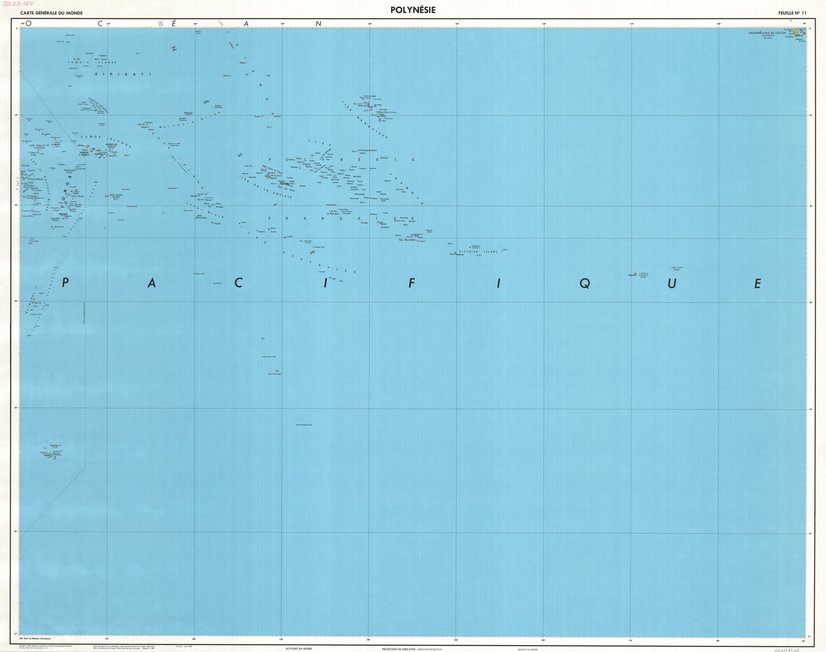 Title: Carte générale du monde, Polynésie - Scale: 10000000 - Carte en 12 feuilles d'assemblage - Sheet number/Numéro de feuille/Bladnummer: 11