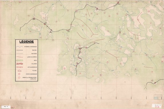 Title: Bloc de Bamba Kilenda - Scale: 15000 - Triangulation "template method" restitution des détails à la chambre claire Assemblage de 4 cartes - Sheet number/Numéro de feuille/Bladnummer: SW
