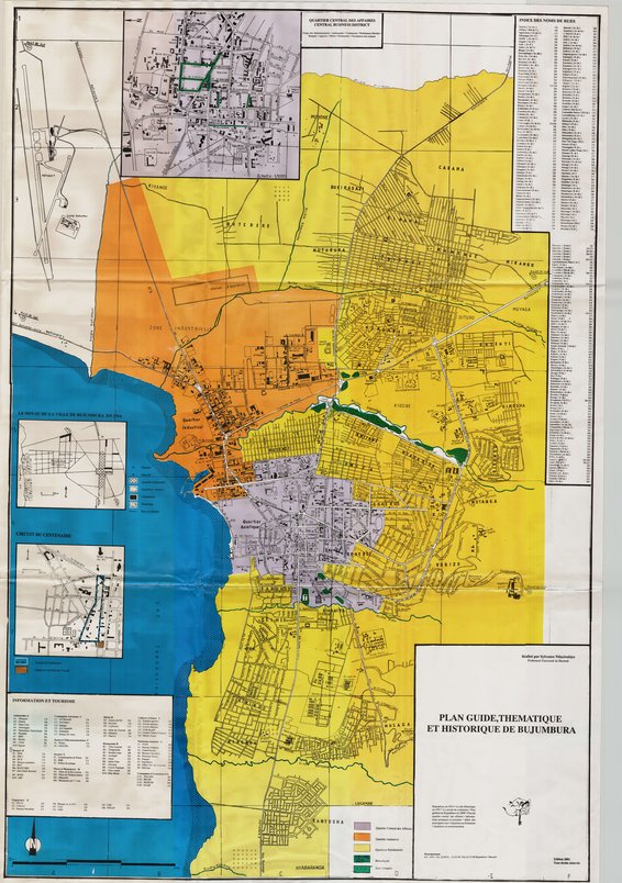 Title: Bujumbura, Plan guide, thématique et historique de Bujumbura - Scale: 15000