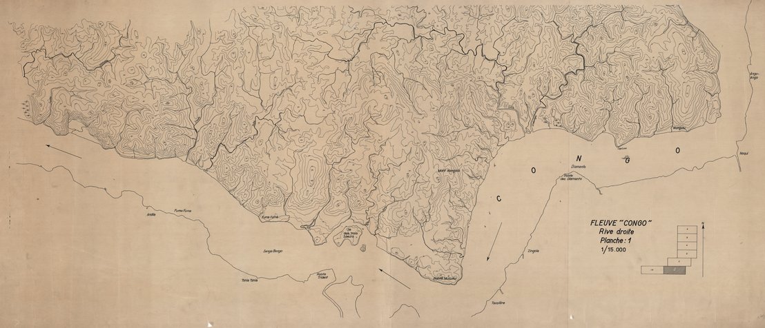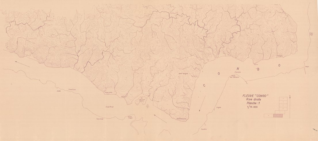 Title: Fleuve "Congo" Rive droite - Scale: 15000 - Carte d'assemblage en 7 planches - Sheet number/Numéro de feuille/Bladnummer: 1
