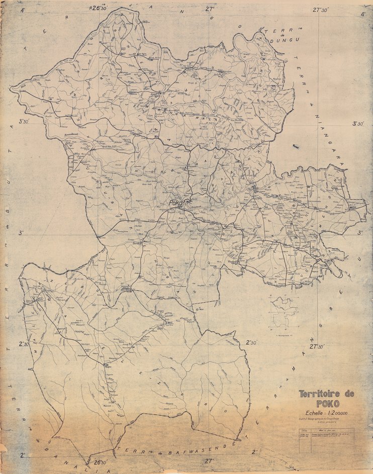 Title: Territoire de Bafwasende - Scale: 200000 - Assemblage de 2 feuilles - Sheet number/Numéro de feuille/Bladnummer: Ouest
