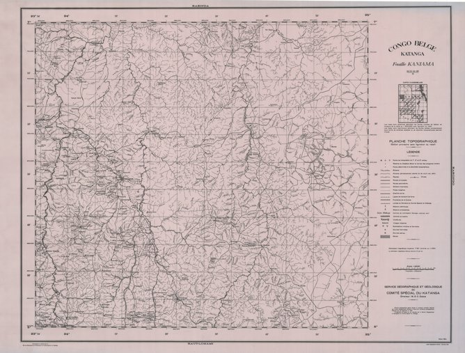 Title: Congo Belge Katanga, Kaniama - Scale: 200000 - Planche topographique sans figuration du relief - Sheet number/Numéro de feuille/Bladnummer: Sud-B-35-S