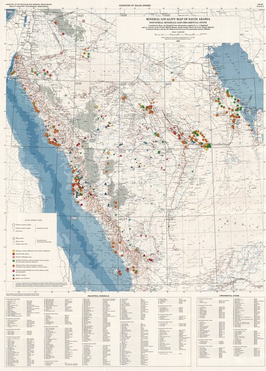 Title: Kingdom of Saudi Arabia Mineral Locality Map of Saudi Arabia Industrial Minerals and Ornamental Stone - Scale: 2500000 - Plate 2 - Sheet number/Numéro de feuille/Bladnummer: GM-65